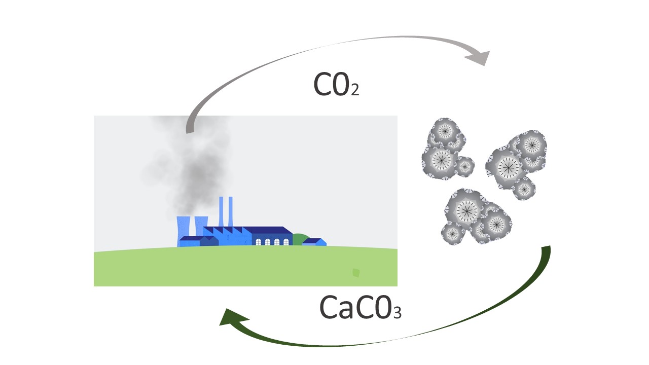 Every tonne of concrete produces around 900kg of CO2. A tonne of CaCO3 contains 440kg of CO2, a net benefit of 1,340 kg of CO2 for every tonne of concrete that is replaced with a tonne of CaCO2.